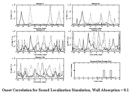 Onset Correlation for Sound Localization Simulation, Wall Absorption = 0.1