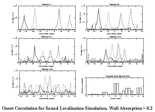 Onset Correlation for Sound Localization Simulation, Wall Absorption = 0.2