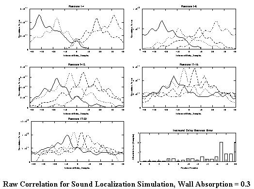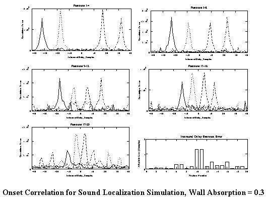 Onset Correlation for Sound Localization Simulation, Wall Absorption = 0.3