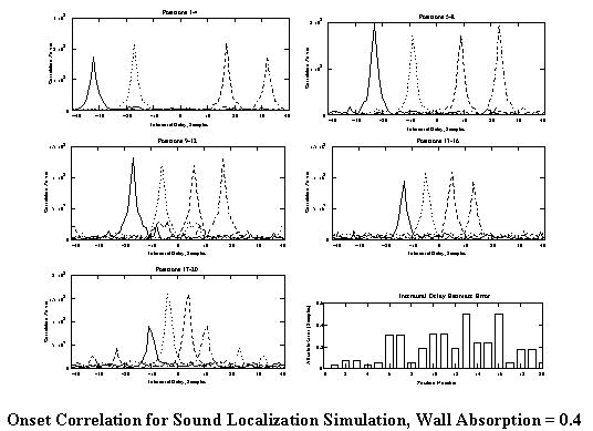 Onset Correlation for Sound Localization Simulation, Wall Absorption = 0.4