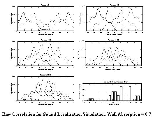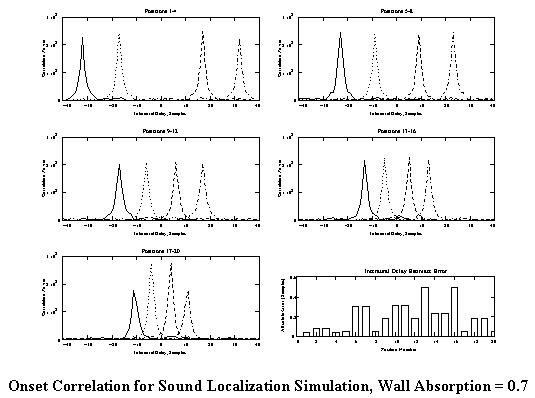 Onset Correlation for Sound Localization Simulation, Wall Absorption = 0.7