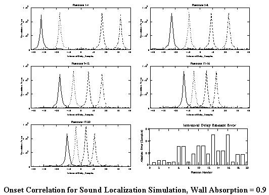 Onset Correlation for Sound Localization Simulation, Wall Absorption = 0.9
