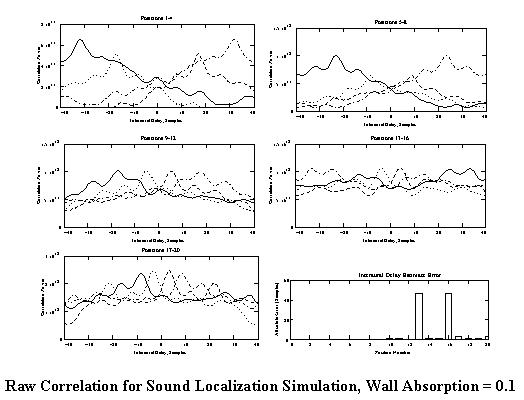 Raw Correlation for Sound Localization Simulation, Wall Absorption = 0.1