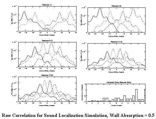 Onset Correlation for Sound Localization Simulation, Wall Absorption = 0.5