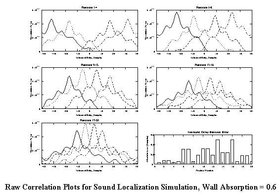 Raw Correlation Plots for Sound Localization Simulation, Wall Absorption = 0.6