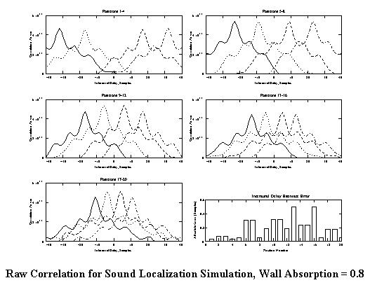 Raw Correlation for Sound Localization Simulation, Wall Absorption = 0.8