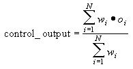 For most control applications, outputs do not need to take the form of fuzzy numbers. A much faster method can be used to evaluate rules by calculating the centroid from singleton recommendations. If each rule i prescribes an output value of oi with an antecedent certainty of wi, then the output of a controller with N rules is calculated as