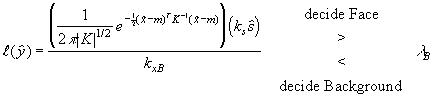 The minimum Bayes risk decision rule in Equation (7) is now rewritten for the talking face detector. Substituting equations (8) and (9) into the expression for the likelihood ratio one obtains: