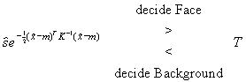 A statistical classifier was designed to classify image pixels as "Talking Face" or "Background" using the color and sound features described in the previous two chapters. From Therrien [66], the decision rule for a two-class minimum Bayes risk classifier is expressed in terms of the probability density likelihood ratio as