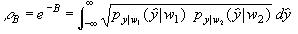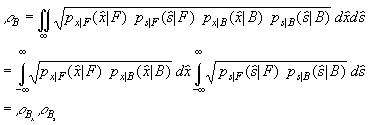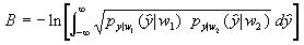called the Bhattacharyya bound. For the talking face pixel detector, substituting the joint probability densities from Equations (8) and (9) into (17) yields