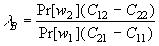 Because the costs Cij, prior probabilities, or constants kxB and ks may not be known, one may determine the decision threshold T empirically by running the system and manually adjusting T until the best detector performance is achieved. This technique was used for this dissertation project, where the number of false positive and false negative classifications were easily observable while the threshold was adjusted.