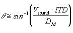 Figure 5 shows the geometry used for calculating sound direction based on interaural delay. Calculation of the ITD between two microphones specifies a hyperbolic locus of points upon which the corresponding sound source may reside. For target distances (DL and DR) much greater than the microphone spacing DM, the target bearing angle may be approximated as