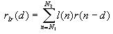 The windowed cross-correlation rlr(d) of digitally sampled sound signals l(n) and r(n) is defined as