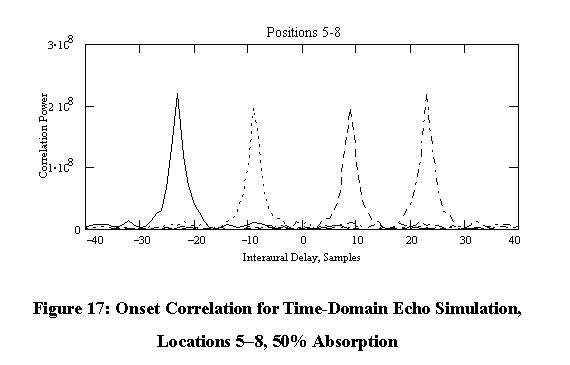 Figure 17: Onset Correlation for Time-Domain Echo Simulation, Locations 5-8, 50% Absorption