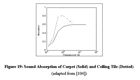 Figure 19: Sound Absorption of Carpet (Solid) and Ceiling Tile (Dotted) (adapted from [104])