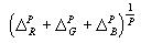 Euclidean distance; and for P it becomes the maximum of {R, G, B}.