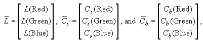 Since the orientation of facial components in a new image are not known, the geometric scaling terms will be denoted simply as ms and mb. The color CCD camera used in this work captures light frequencies near the colors red, green, and blue, so Equation (3) may be rewritten in vector form as