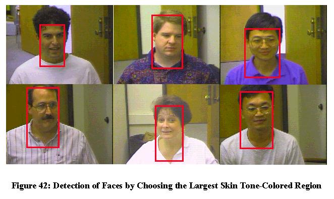 Figure 42: Detection of Faces by Choosing the Largest Skin Tone-Colored Region